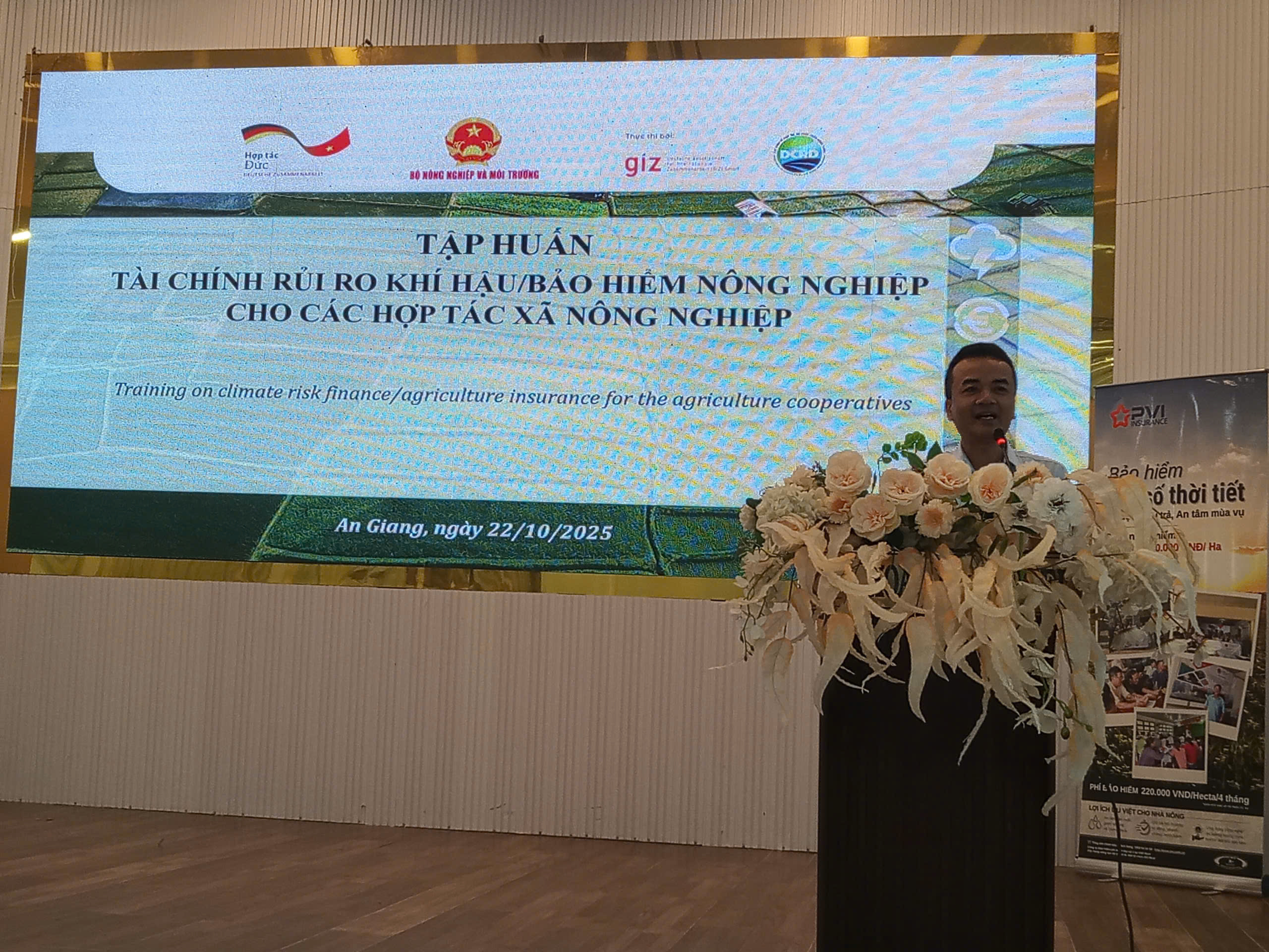 Hội thảo nằm trong khuôn khổ Dự án “Sáng kiến tài trợ rủi ro do khí hậu cho ngành nông nghiệp tại Việt Nam”, do Cục Kinh tế Hợp tác và Phát triển nông thôn phối hợp cùng Tổ chức Hợp tác quốc tế Đức (gọi tắt là tổ chức GIZ) triển khai tại An Giang và Đồng Tháp (thực hiện theo Công văn số 1126/KTHT-HTTT ngày 09/10/2025 của Cục Kinh tế Hợp tác và Phát triển nông thôn).